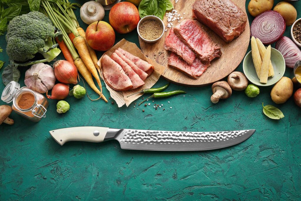 This series of products features high-quality German 1.4116 stainless steel blades, which are vacuum heat-treated to achieve a hardness of 55-57HRC. This steel contains metal elements such as chromium, molybdenum and vanadium, which give it superior properties. Compared to ordinary stainless steel kitchen knives, they have better corrosion resistance, rust resistance and strong toughness. These blades are extremely sharp and provide a perfect cutting, preserving the original flavor of the food.