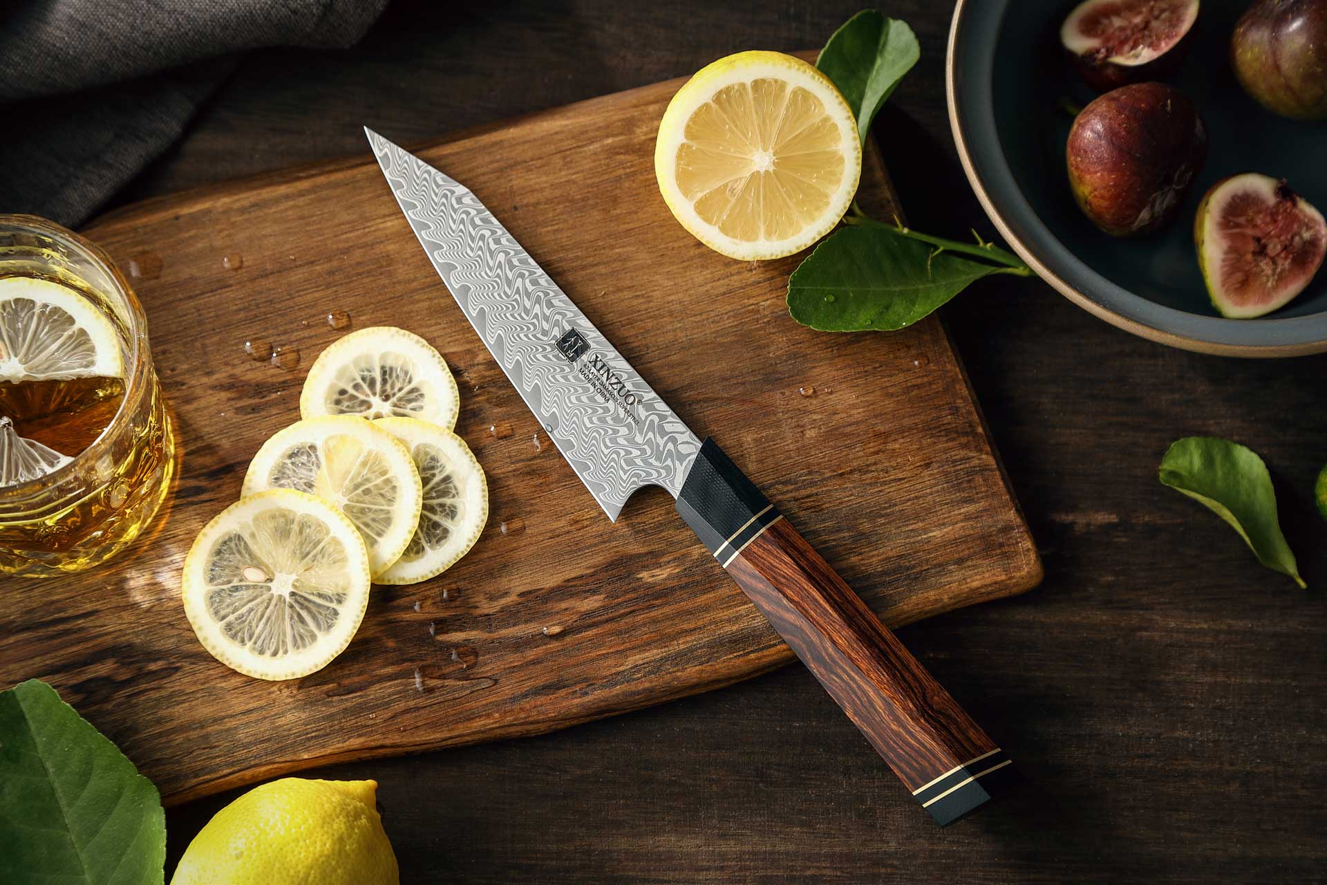 The handle is crafted from high-quality desert ironwood and black G10, which are hard, durable, non-slip and moisture-resistant. It is very light and comfortable and fits perfectly in your hand, making cutting easier and safer. The handle and blade have been carefully balanced to ensure optimal control and durability. The back of the knife is manually sanded and polished, which alleviates the pressure on your fingers.